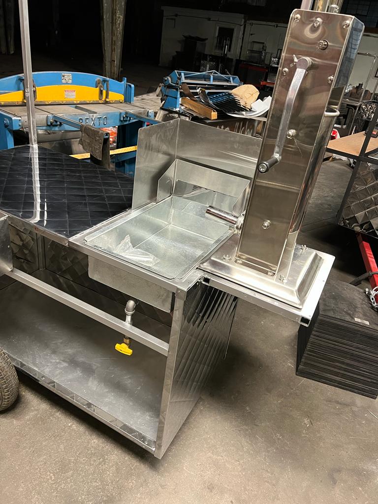 Ideal for restaurants, catering companies, and small food businesses, this churro cart features a durable, easy-to-clean design with space for a fryer, prep area, and serving station.